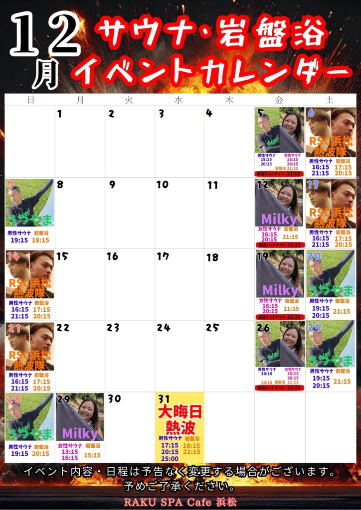 12月サウナ・岩盤浴イベントカレンダー