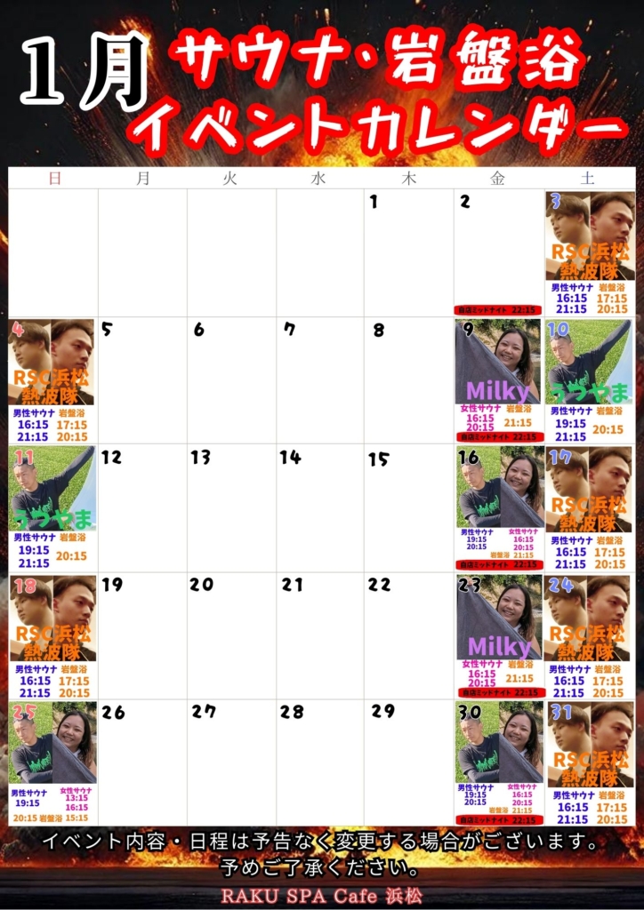 1月サウナ・岩盤浴イベントカレンダー