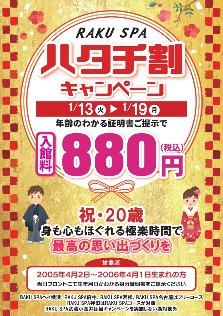 1/13(火)~1/19(月) ハタチ(20歳)割キャンペーン
