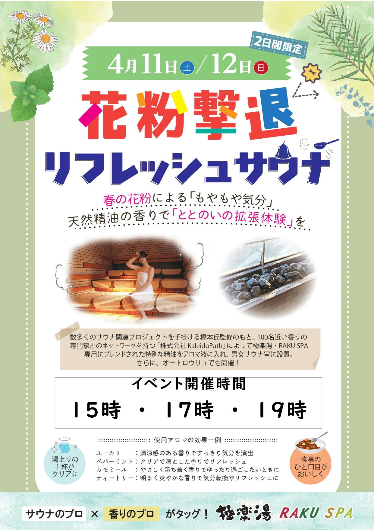 4月11日/12日 花粉撃退 リフレッシュロウリュサウナ開催
