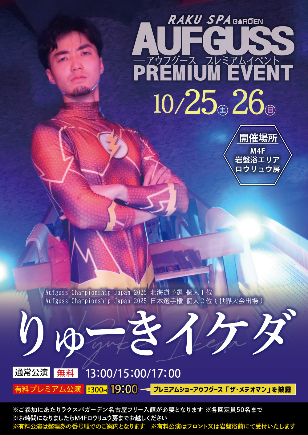 ※19時の有料公演回のご予約は当日フロント又は岩盤浴前受付までお問い合わせください。