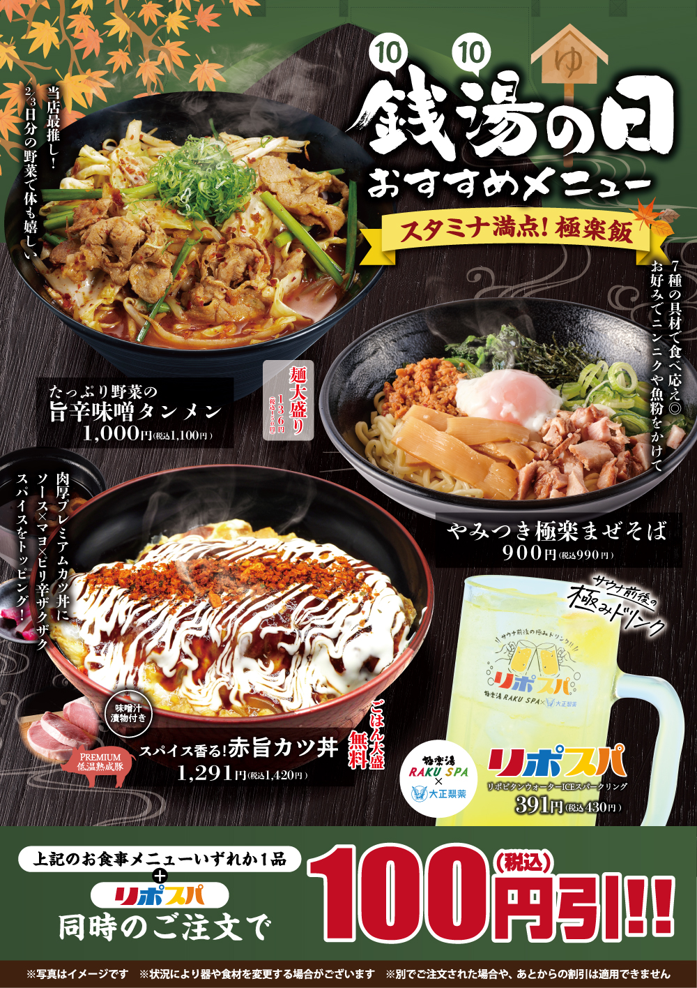 🔥[銭湯の日おすすめメニュー+リポスパ]の同時注文で”税込100円引“キャンペーン開催🔥