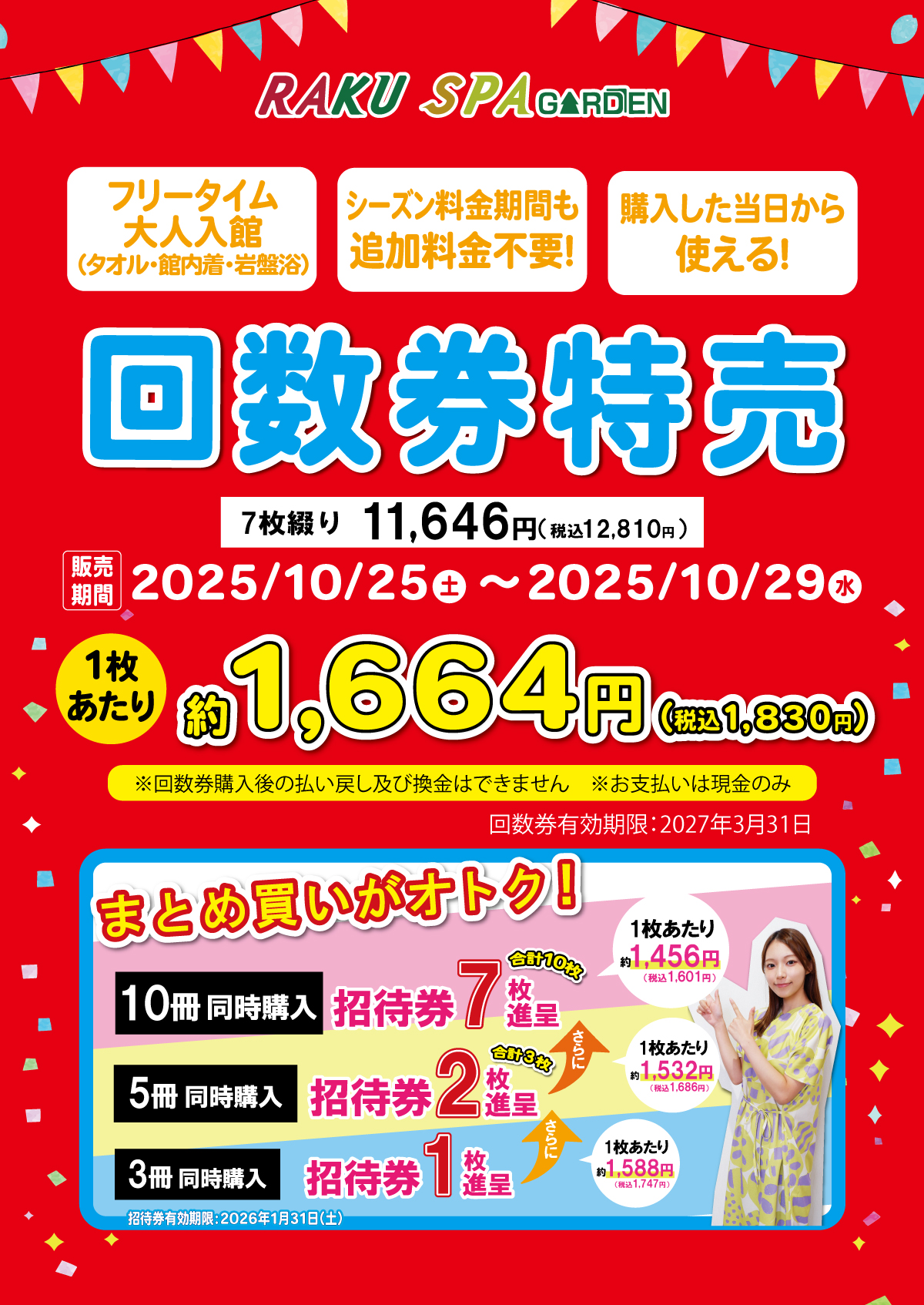 2025/10/25(土) ~ 2025/10/29(水)の期間、”回数券特売キャンペーン”を実施いたします!