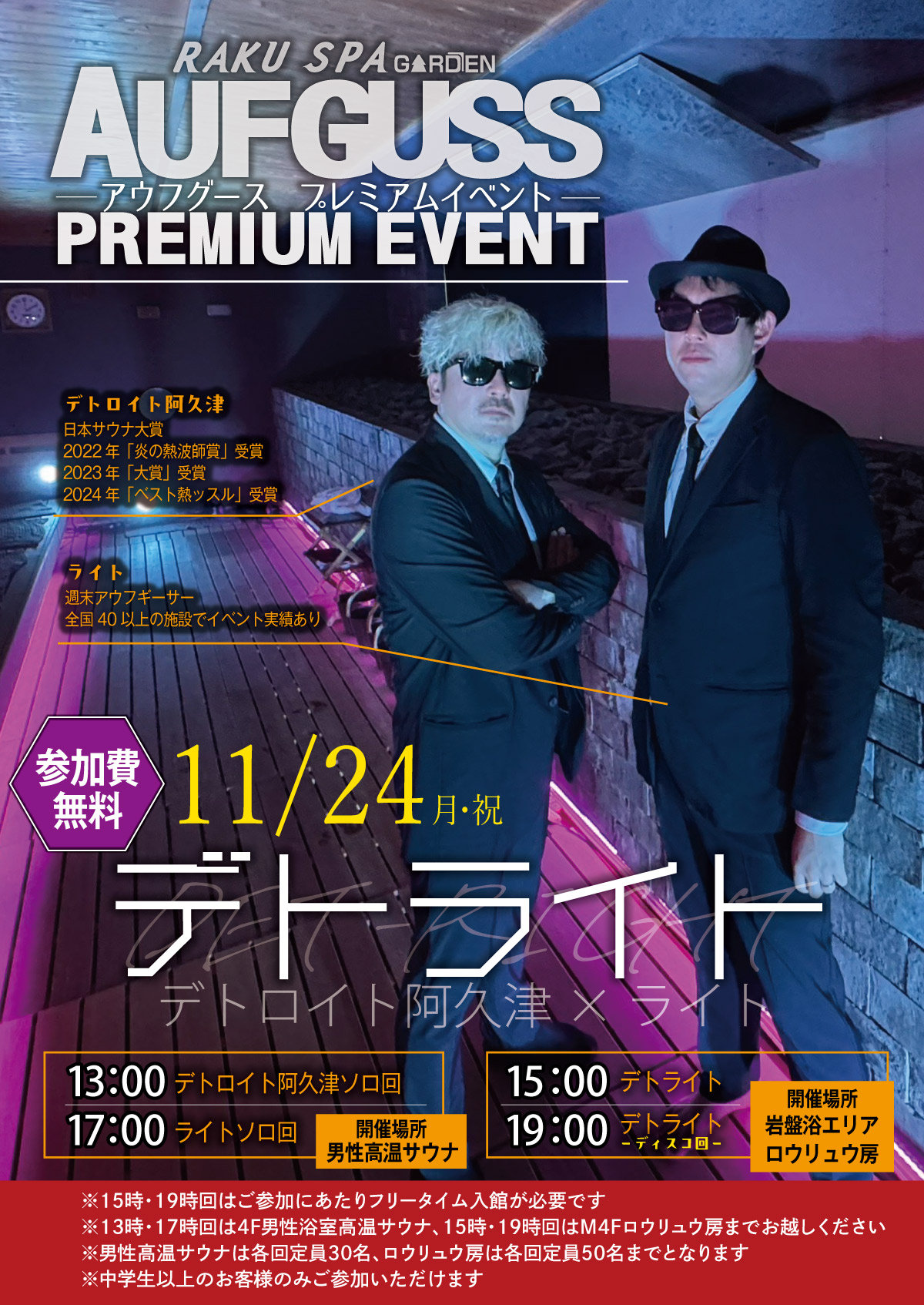13時・17時は”男性サウナ限定公演“となりますが、