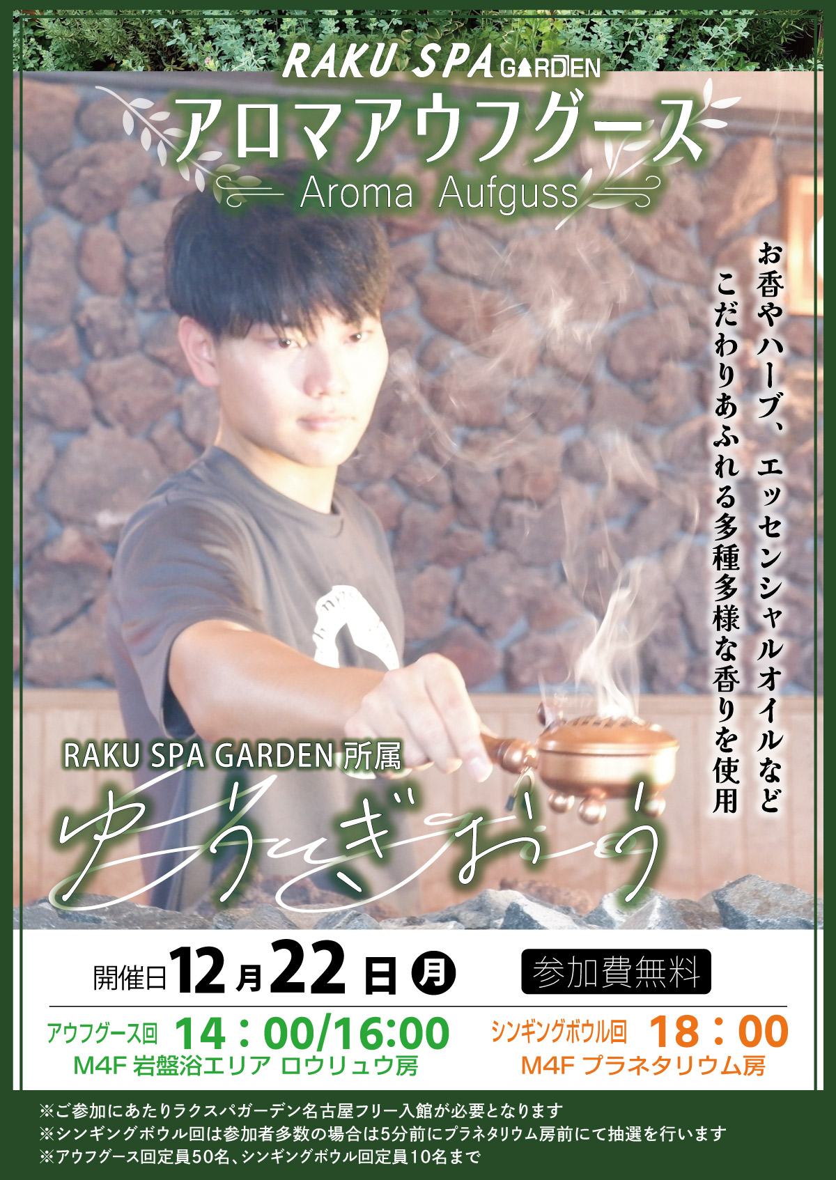 まさに、音と香りの魔術師「ゆうぎおう」のアウフグース&シンギングボウルをお楽しみください。