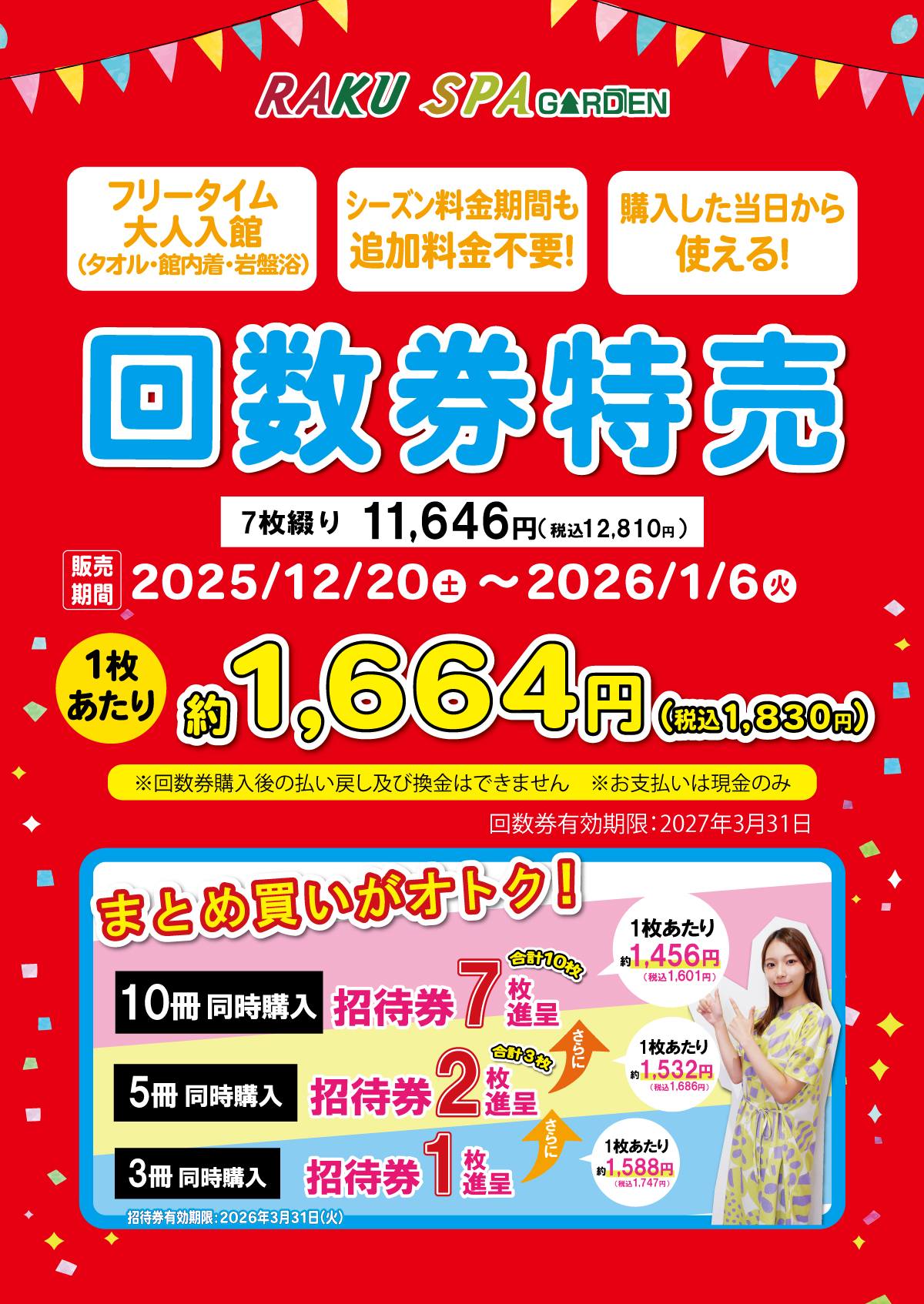 2025/12/20(土) ~ 2026/1/6(火)の期間、”回数券特売キャンペーン”を実施いたします!