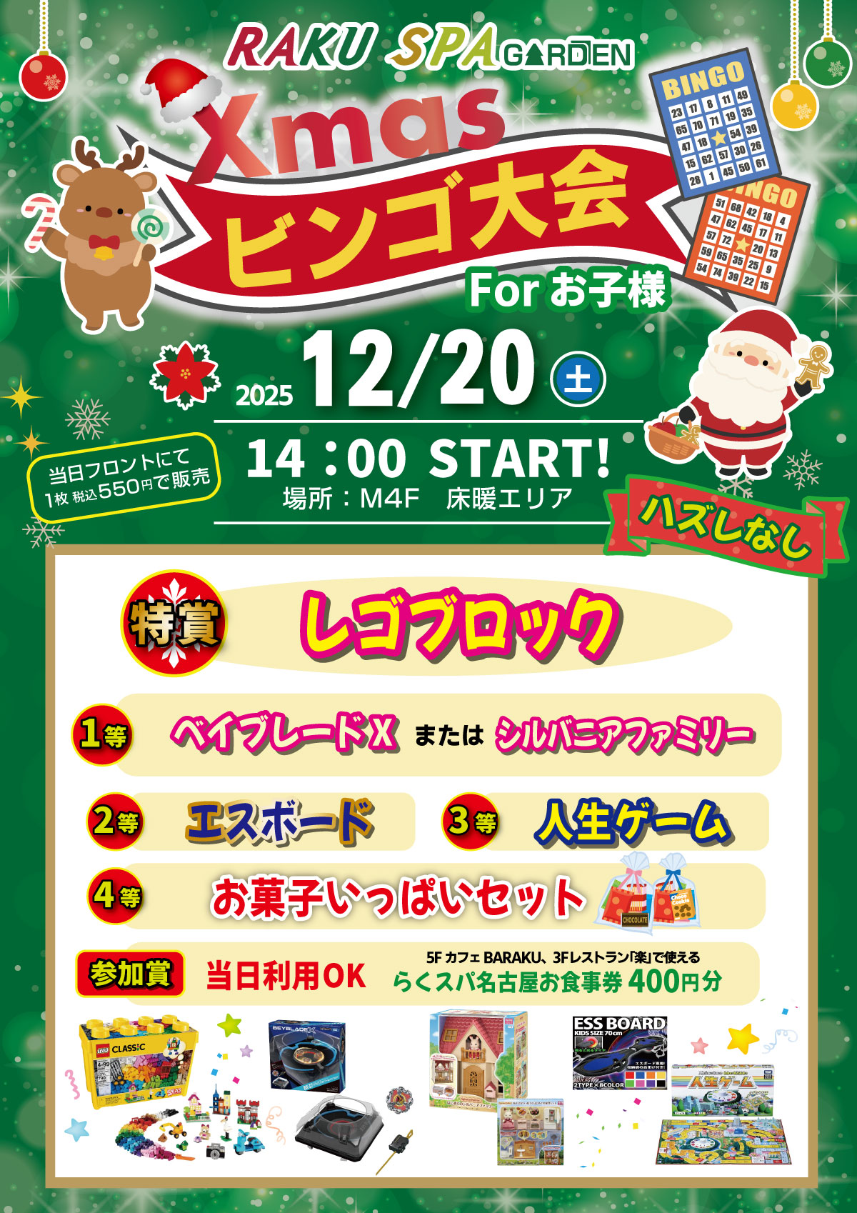 今回は12/20(土)開催、お子様向けビンゴのご案内です。