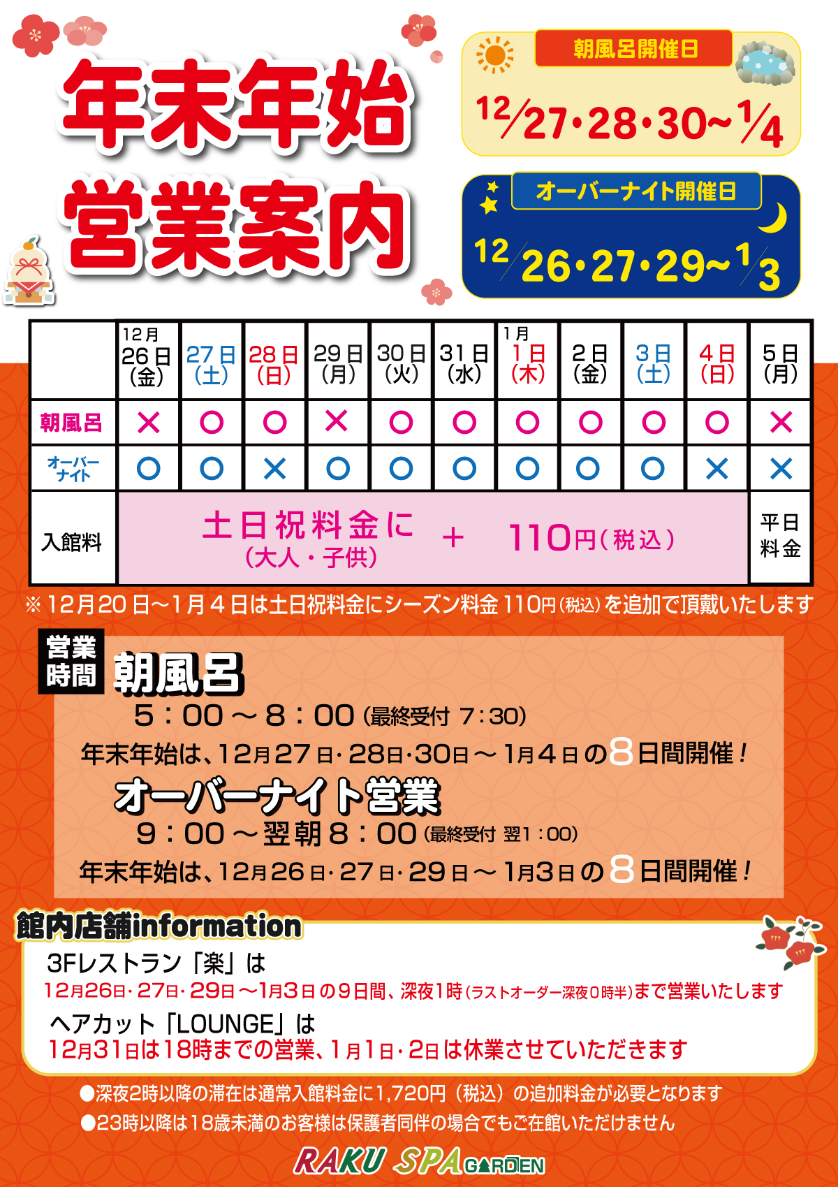 [年末年始シーズン料金のご案内]