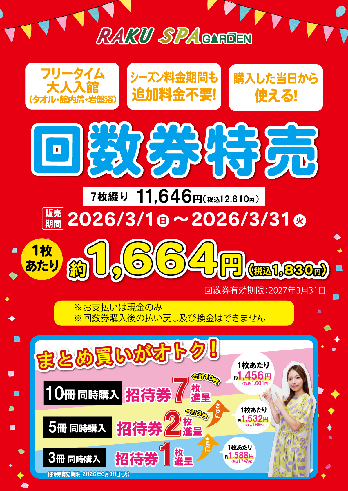 2026/3/1(日) ~ 2026/3/31(火)の期間、”回数券特売キャンペーン”を実施いたします!