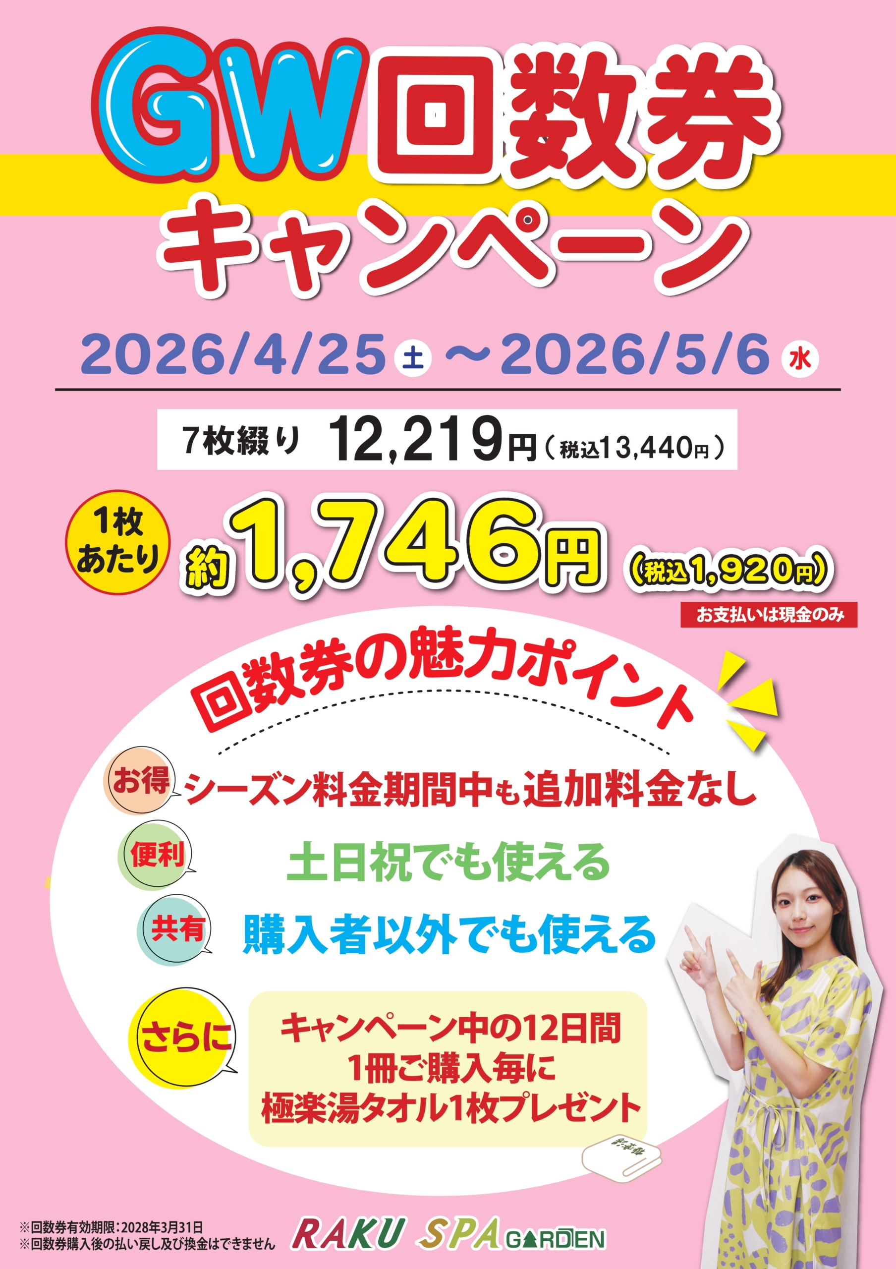 2026/4/25(土) ~ 2026/5/6(水)の期間、”GW回数券キャンペーン”を実施いたします!