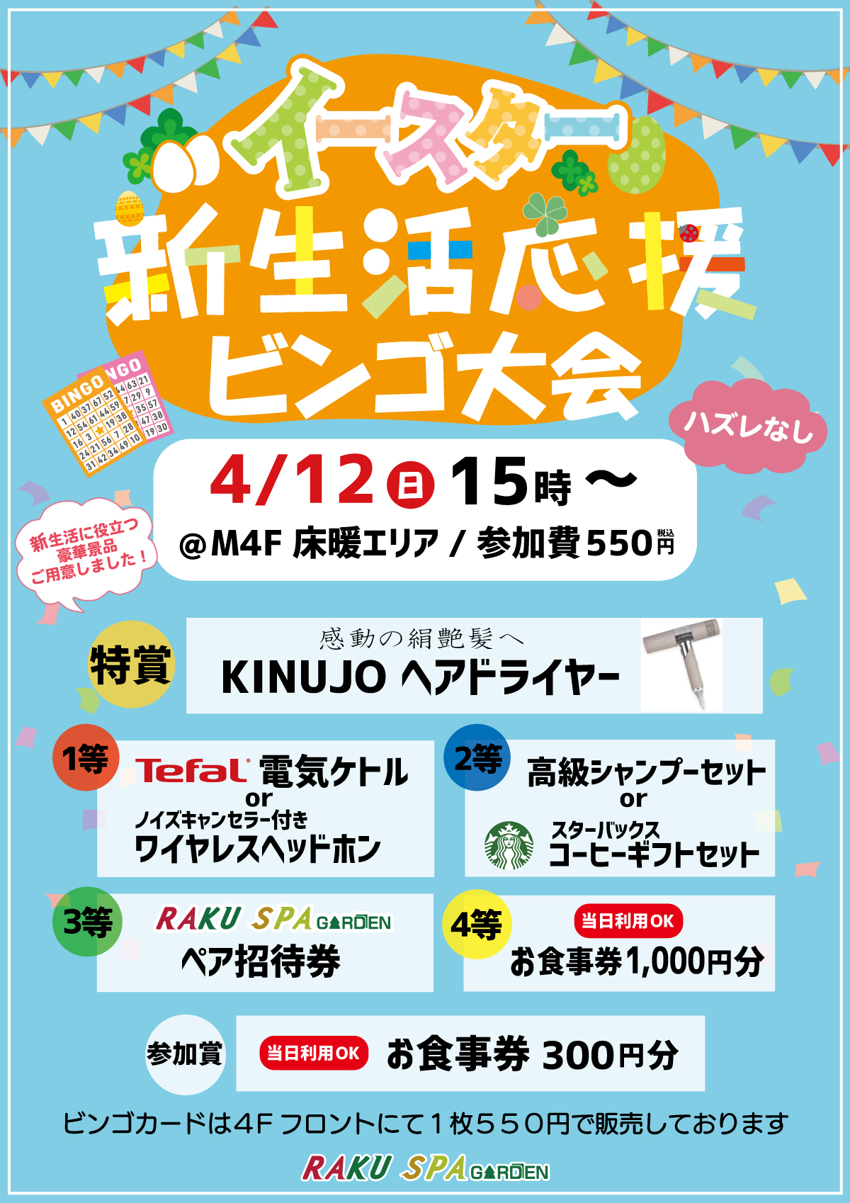 🌸新生活応援イベント🌸 \\ イースター ビンゴ大会 // 開催🎉 4月12日(日) 15時~