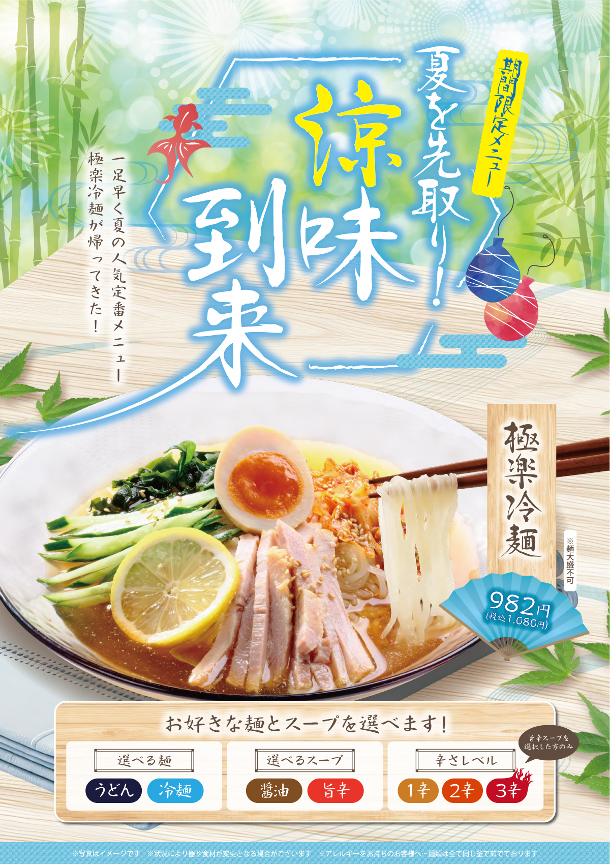 【3Fレストラン】期間限定メニュー🎐~夏を先取り!涼味到来~ 「極楽湯冷麺」販売開始🎐