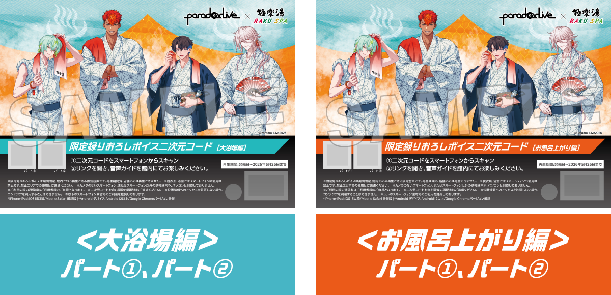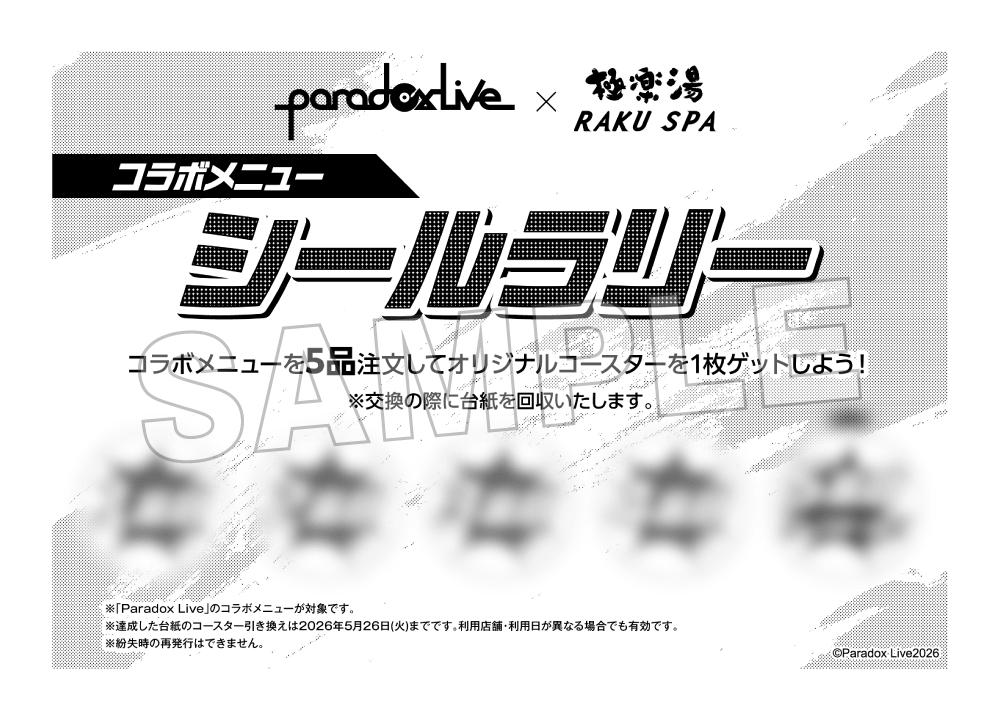 パラライプラスセット及びコラボグッズの購入、コラボメニューのご注文、コラボ風呂のご利用につきましてはご入館受付が必要となります。