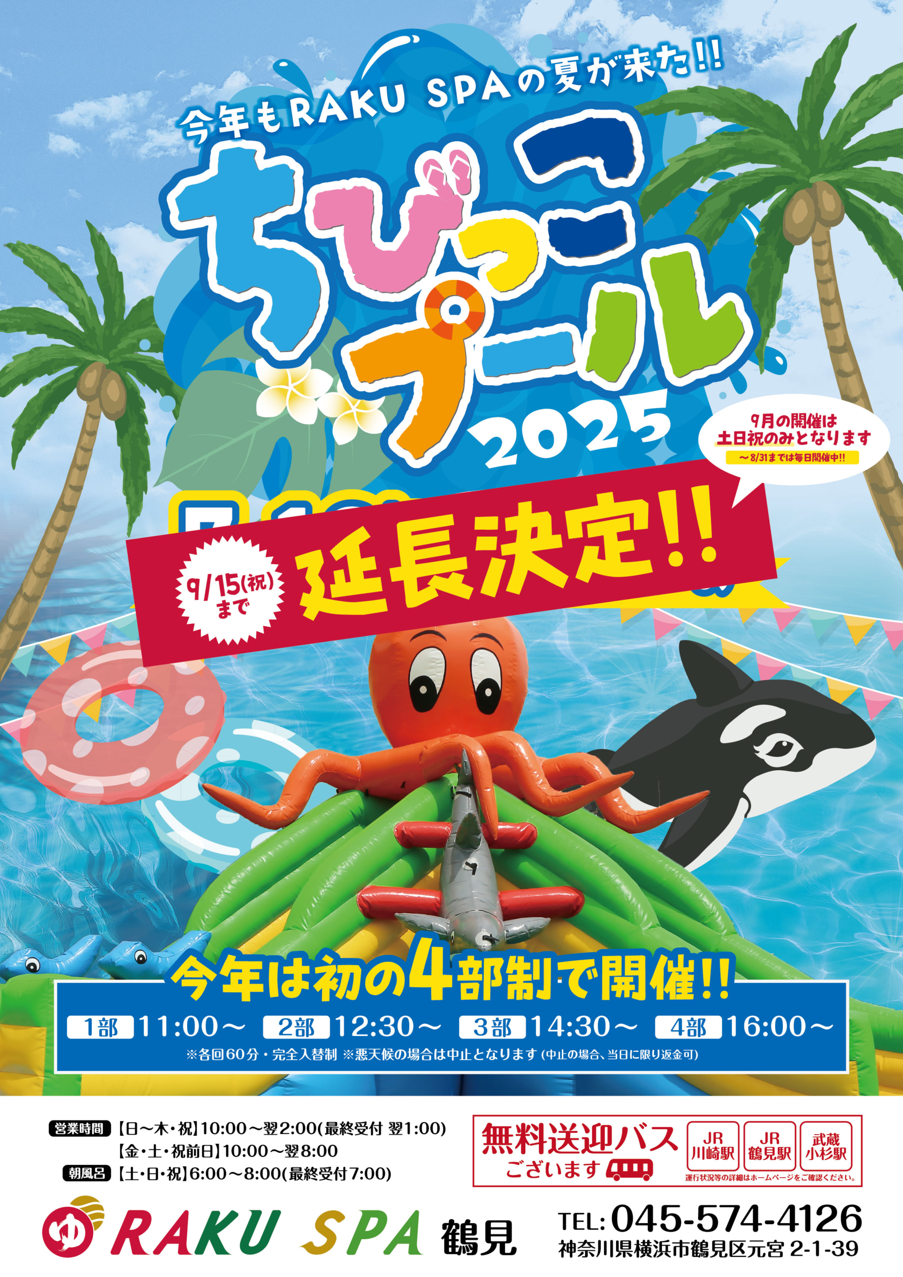 大好評「ちびっこプール」延長決定‼ 2025年08月24日 満員御礼!!毎年大人気の「ちびっこプール」 今年は初の4部制となり、うきわや水鉄砲の貸し出しもあります✨ 0歳のお子様からご利用いただけて、プールデビューにもピッタリ! なんと、大好評につき9月15日(月・祝)までの延長が決定❗❗ ※9月の開催は土日祝のみとなります。~8月31日までは毎日開催! ※悪天候時は中止となる場合がございます みなさまのご来店お待ちしております! 詳しくは、店舗までお問い合わせください。