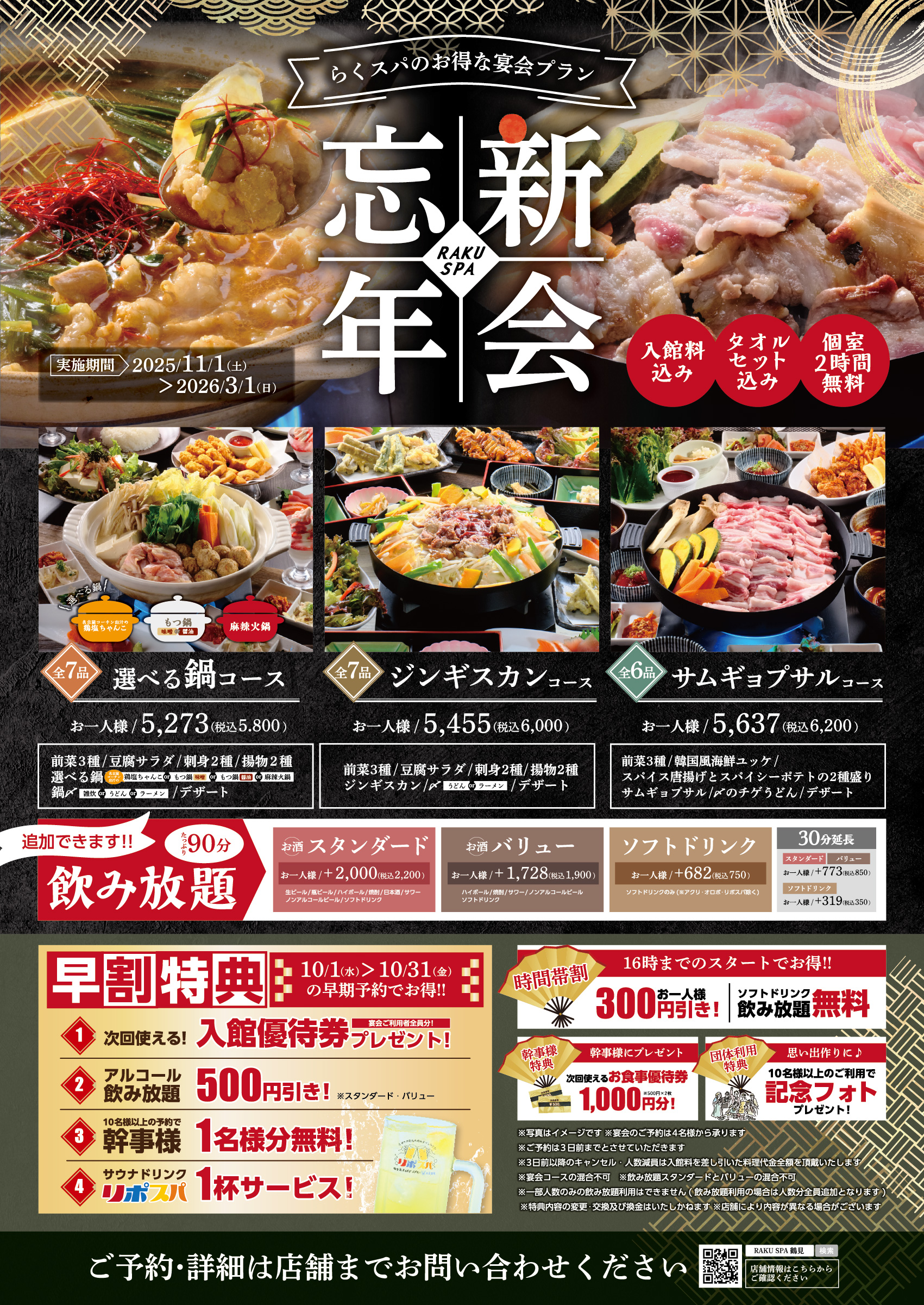 【忘新年会プラン実施期間】2025年11月1日~2026年3月1日