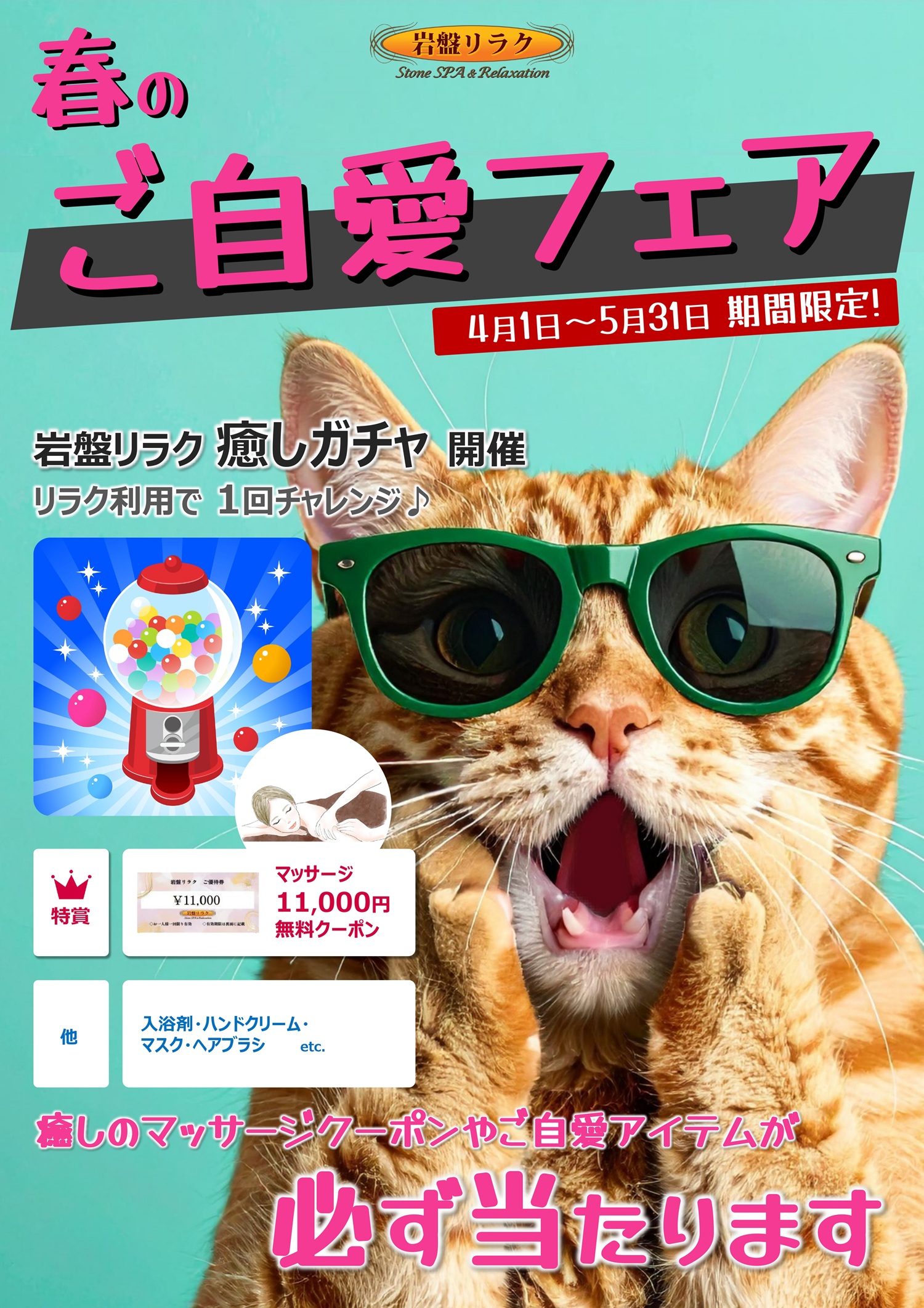 リラクゼーションサロン「岩盤リラク」では、4月1日~5月31日期間限定