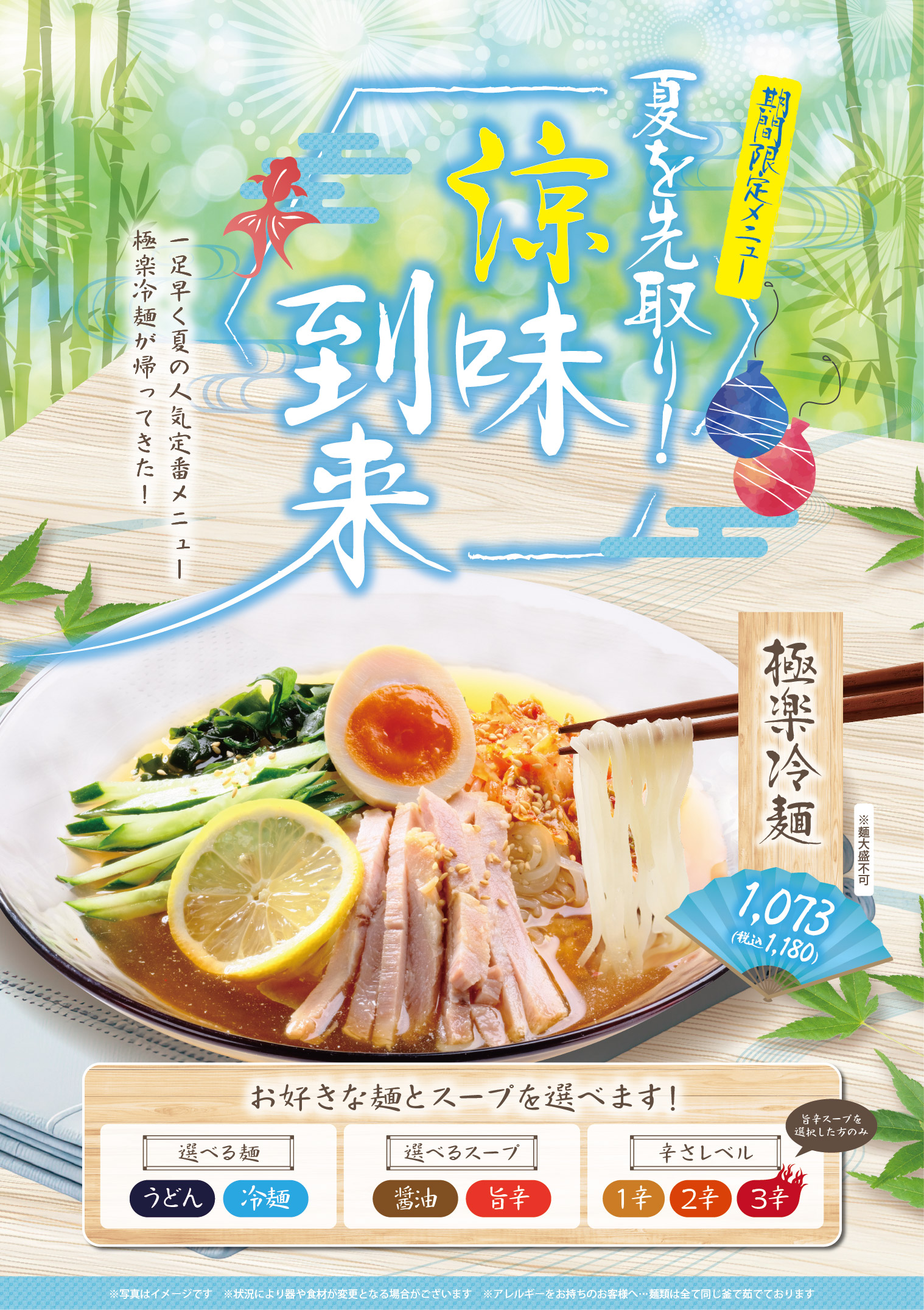 【2Fレストラン】期間限定メニュー🎐~夏を先取り!涼味到来~ 「極楽湯冷麺」販売開始🎐