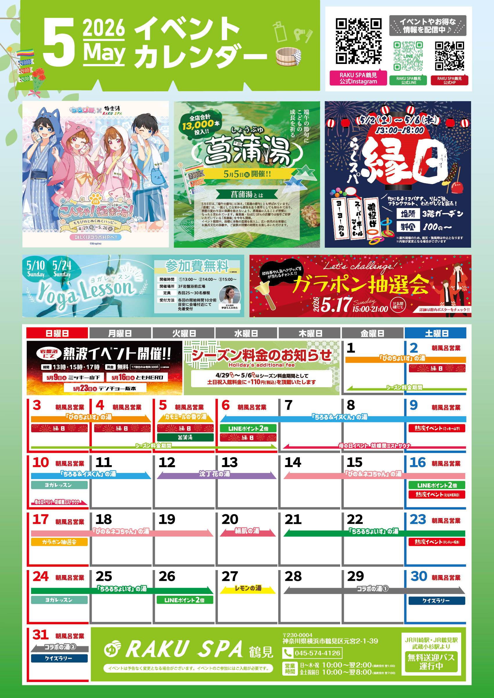 今年のGWは、5/2(土)~5/6(水)の期間で『らくスパ縁日』を開催✨
