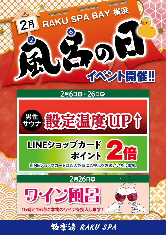 2月6日と2月26日は風呂の日イベント実施!この機会をお見逃しなく!