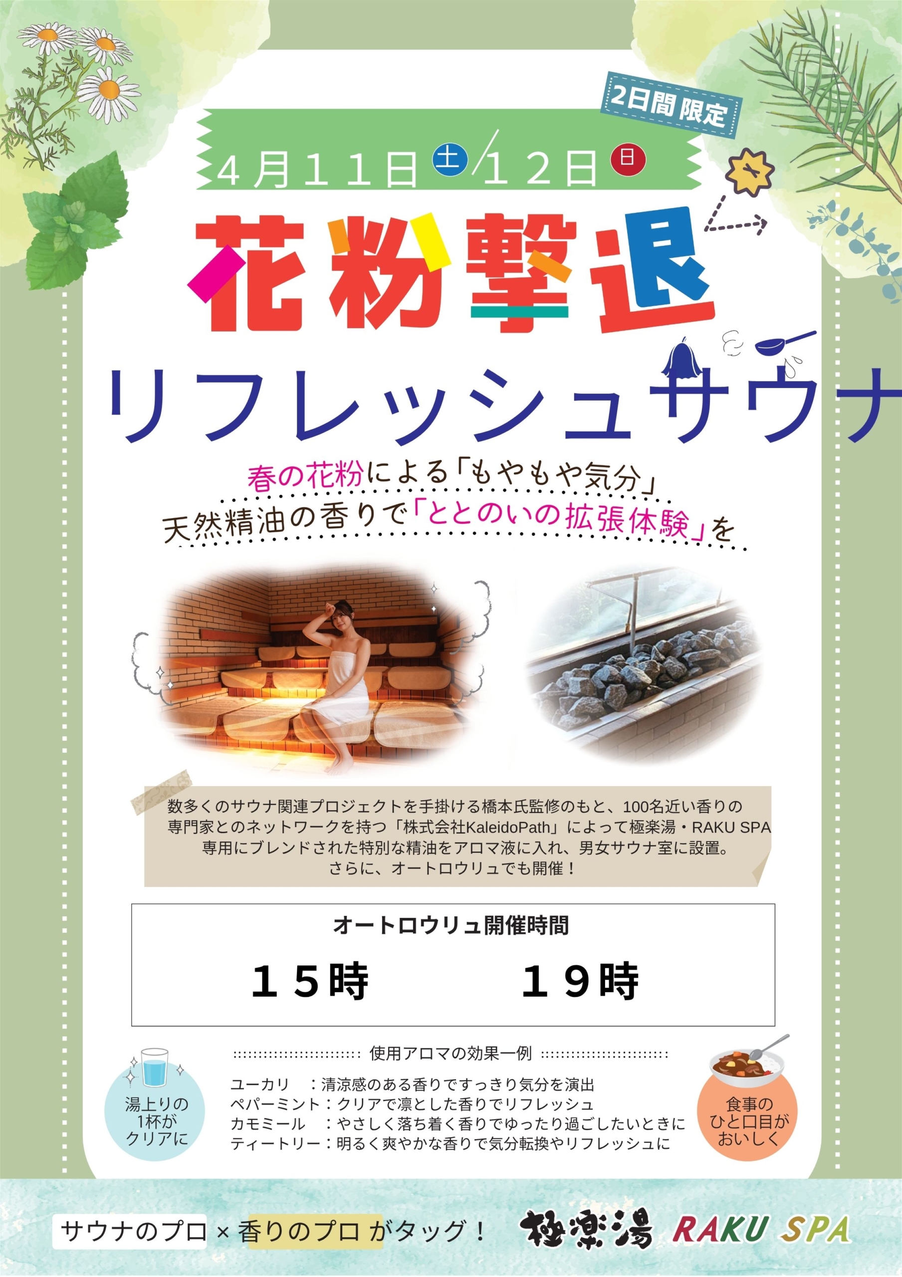 4月11日(土)・4月12日(日)花粉撃退サウナ開催!