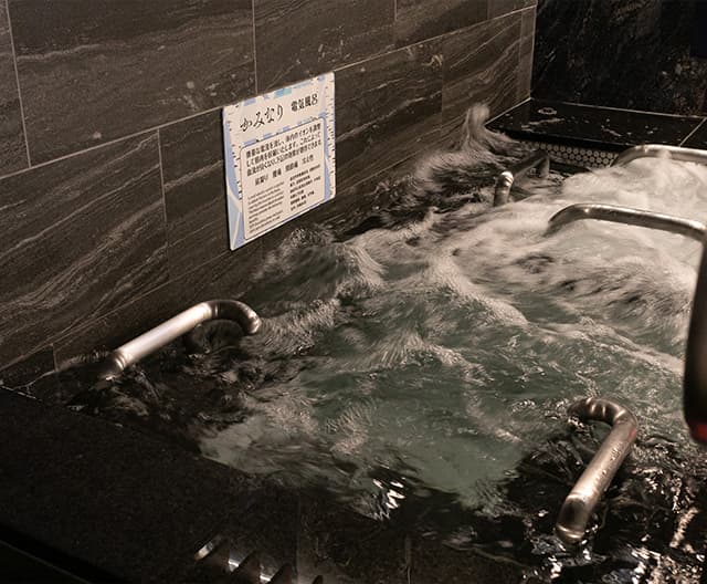 お湯(または水)全体から細かな気泡がふんわりと湧き出し、身体にやさしくまとわりつく“美泡”のお風呂です。肌ざわりがとてもまろやかで、女湯では入浴後のぽかぽか感が長く続き、男湯では水の肌あたりがやわらぎ、冷たさをやさしく感じられます。