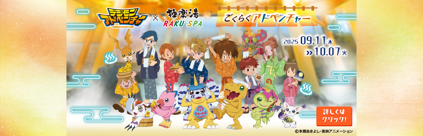 デジモンアドベンチャー×極楽湯 RAKU SPAコラボ 開催決定!