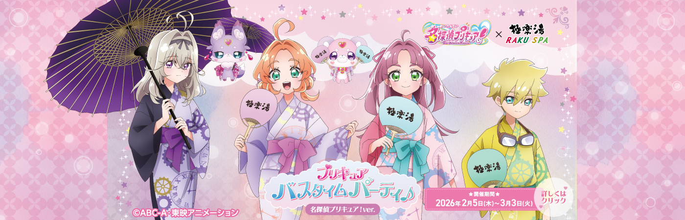 TVアニメ「名探偵プリキュア!」×極楽湯 RAKU SPAコラボ 開催決定!